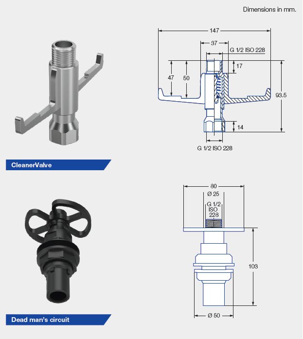 - Bardzo szerokie ramiona zaworu ułatwiają mycie zbiorników kalibracyjnych